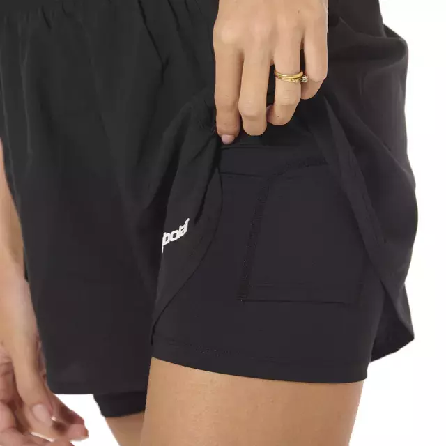 El Short Strike 2-in-1 para mujer combina un short externo de tela plana elastizada con una calza interna. Cuenta con un bolsillo invertido específico para la pelota de tenis y un ajuste interno de elástico en la cintura para un fit perfecto. Los logos de la marca estampados en el frente y la espalda completan su diseño funcional y deportivo.